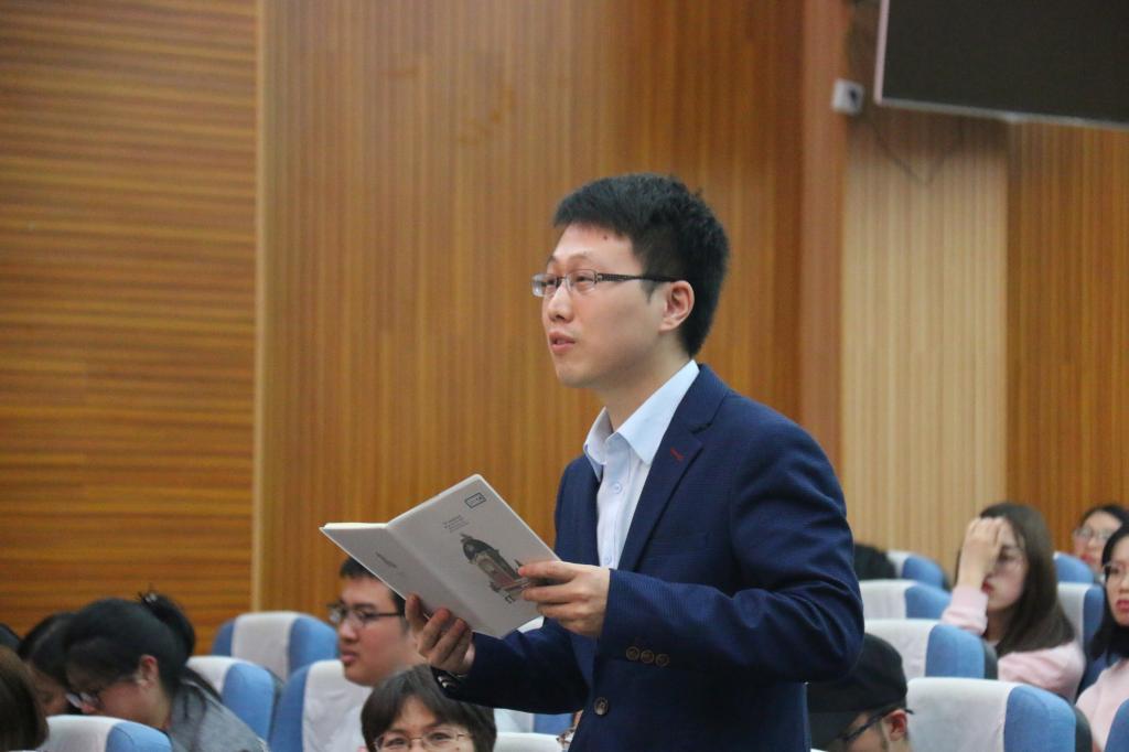 讲座中,覃修桂教授分享了自己在研究认知语言学、第二语言习得及外语教学方面的经验。从体验和认知两个视角,考察英汉两种语言中视觉、听觉、嗅觉、味觉、触觉、温度觉等概念域的隐喻投射,对比它们的共性和个性,揭示其背后的隐喻系统及认知理据,重新验证“以身喻心”这一隐喻所具有的跨语言性质。覃修桂教授展示了自己的论文,并在此基础上向大家分享了自己的经验以及背后的想法。现场师生认真聆听,在交流环节中积极提出问题,覃修桂教授耐心解答,并在回答中表达独到的见解,获得在场师生的掌声。