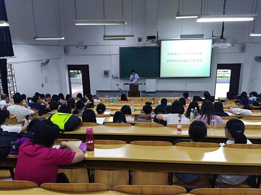 为维护学校安全稳定、构建安全文明和谐校园,5月15日下午,我院在雁山校区05102教室召开2018年安全稳定工作会议。全院教职工参加了会议。会议由江玲副书记主持。
