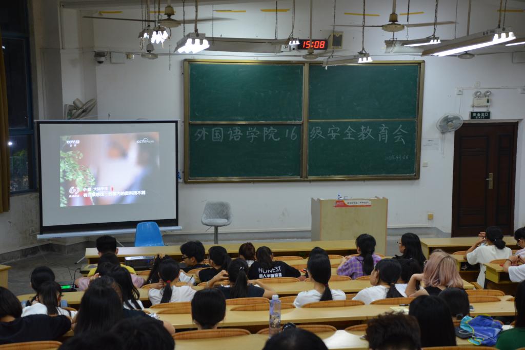 9月16日晚,我院组织全体学生于周日晚例会观看《焦点访谈》栏目播出的揭批台湾间谍情报活动的专题节目“危情谍影”。