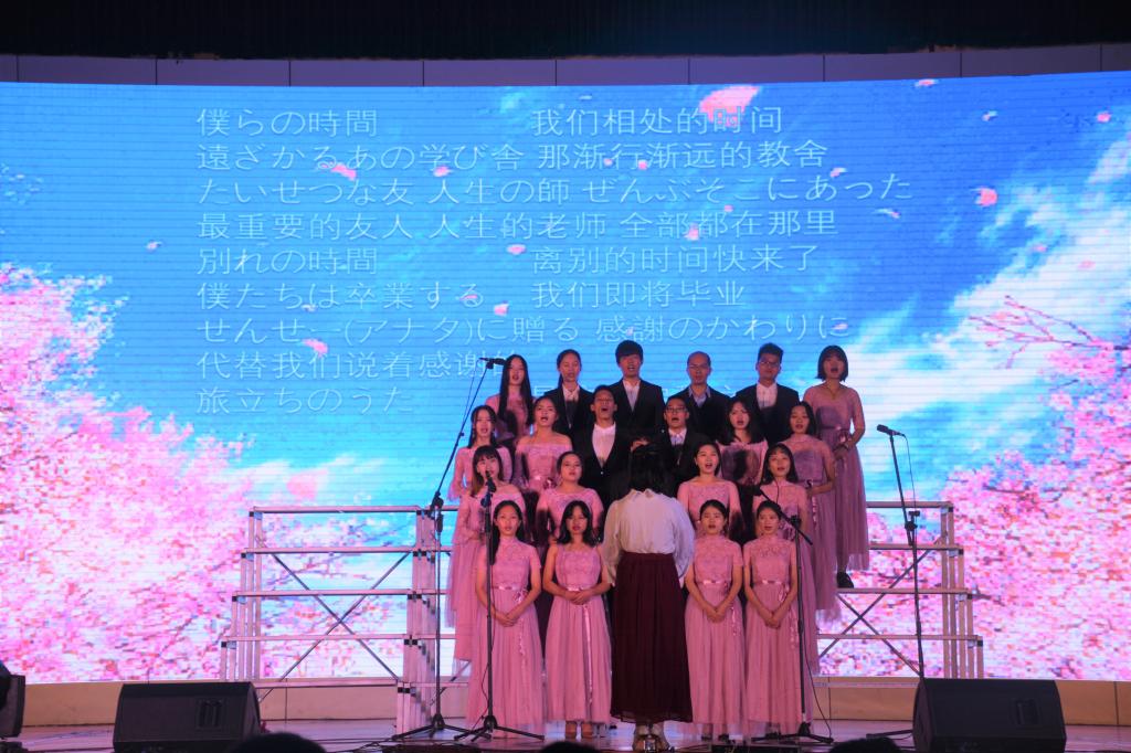 本次合唱比赛以我院艺术团的精彩表演开场,成功点燃了现场的气氛。热场过后,由我院院长全克林上台致辞,并预祝比赛取得圆满成功,本次合唱比赛正式拉开帷幕。在比赛中,各班级创意倍出,节目精彩纷呈,同学们以饱满的热情和动听的歌声彰显了青春的活力。除此之外,各班级在表演过程中还穿插了原创短剧、书法展示和婀娜多姿的舞蹈表演,使现场观众在享受音乐的同时收获视觉上的体验。同时,在比赛过程中还有令人激动的易班抽奖环节以及乐器表演,再一次带动了现场的气氛,全场掌声和喝彩声持续不断。最后,本次合唱比赛在我院声乐队优美的歌声中圆满落幕。在本次合唱比赛中,荣获一等奖的是英语17-5班和日语15-1班,我院院长全克林为之颁奖;荣获二等奖的是英语15-1班、英语16-2班、日语16-2班和日语17-1班,我院党委副书记邓洁琼为之颁奖;荣获三等奖的是英语16-4班、英语16-3班、日语15-2班和日语16-1班,我院副院长唐渠为之颁奖;荣获精神文明奖的是英语18-6班,我院院长助理曾文华为之颁奖;荣获最佳指挥奖的是英语16-4班金颖洁和英语15-1班邵世娜,我院副院长胡金为之颁奖。