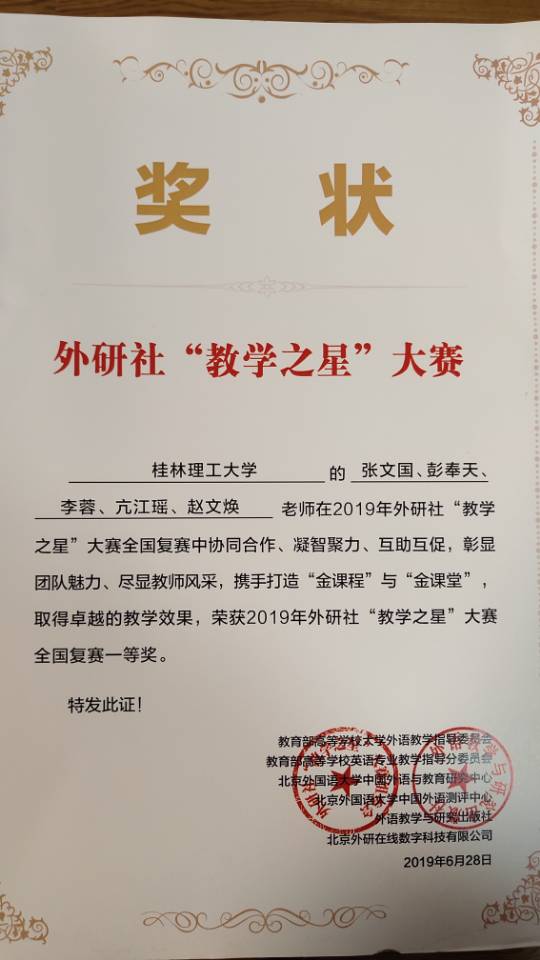 《交际英语》团队全国一等奖证书