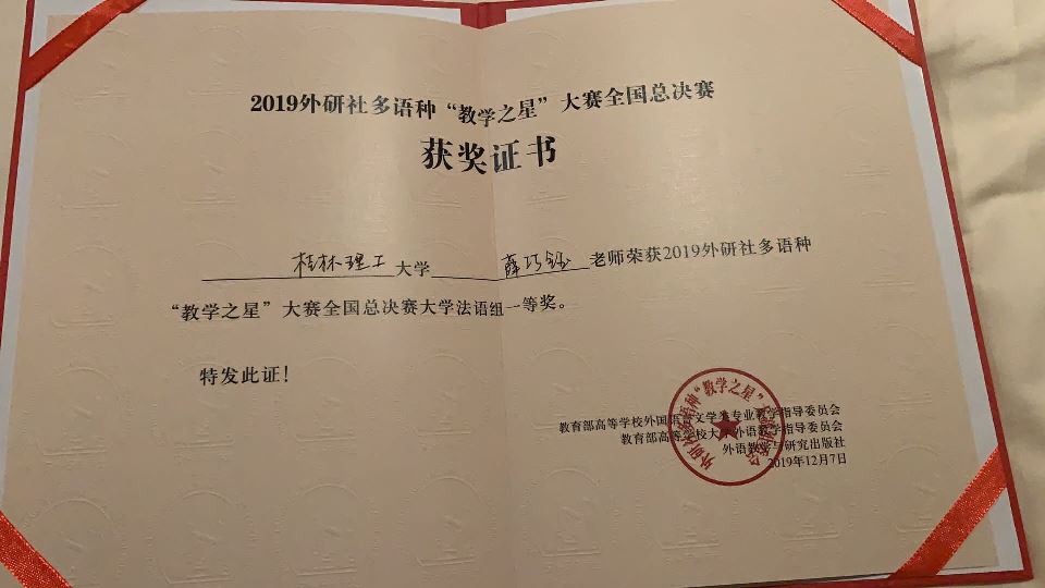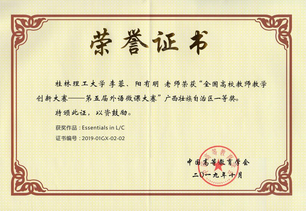 第五届外语微课大赛广西一等奖