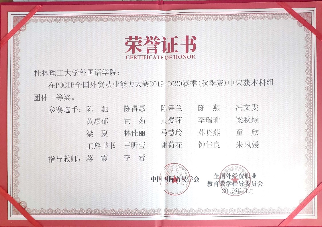 本次大赛主要考查参赛选手的国际贸易磋商、外贸函电撰写、交易成本核算等能力,以及履约流程、单据制作等仿真外贸业务操作技能,并根据学习能力、业务能力、跟单能力和综合能力四项指标对模拟交易成果做出评定。比赛中,我院学子发挥个人特长、互相帮助、以扎实的专业功底、精湛的沟通技巧和灵活的应变能力,从众多参赛队伍中脱颖而出,取得优异成绩。