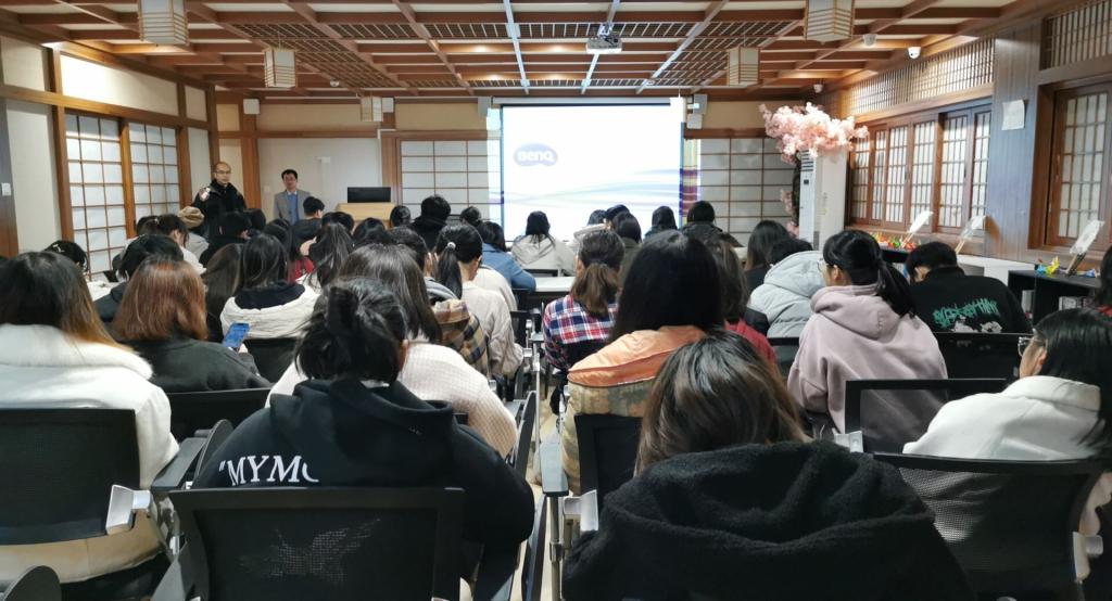 2019年12月31日日本国立情报学(信息学)研究所博士后、研究员刘君,应我校外国语开元(中国)邀请做客桂工讲座,给师生们带来了一场“人工智能+外语教育:日语句型辅助学习系统的构建”为主题的报告。开元(中国)相关专业60余名师生聆听了报告。