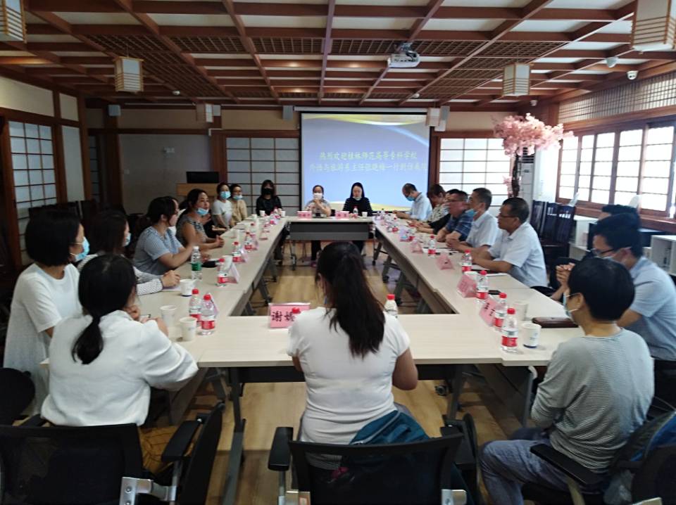 5月22日我院在日本文化体验中心热情地接待了桂林高等师范专科学校外语与旅游系张晓梅系主任一行11人的来访。双方主要就英语专业商务方向的建设、人才培养方案的制定经验及做法进行了交流。
