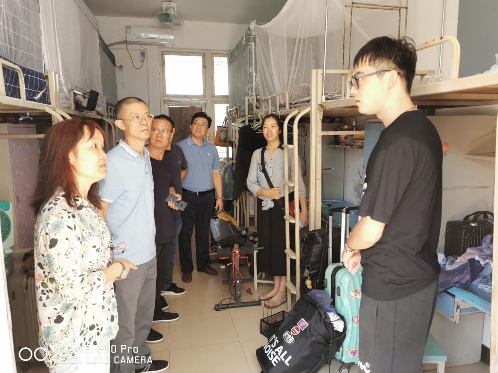 为深入了解疫情期间我院学生返校情况,及时解决学生返校期间生活、学习上的各种问题和困难。2020年8月28日上午,我院党委书记谢济光、院长唐渠、党委副书记邓洁琼、副院长胡金、李蓉、朱建斌一行前往学生寝室对返校学生进行了走访慰问,为久别校园的同学们送上关怀。