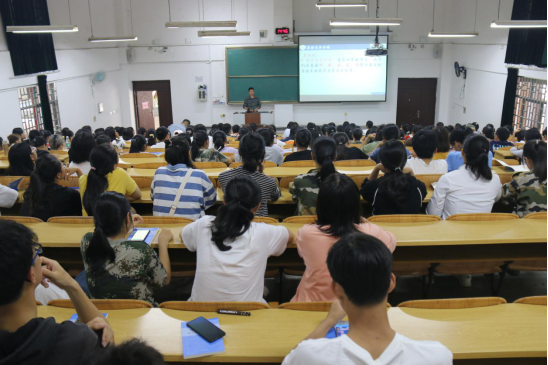 在专业教育讲座上,我院英语专业教授莫运夏首先向大家介绍了英语专业,述说了英语专业的学习任务,表明本专业主要是听、说、读、写四个学习方面。接着,他向大家介绍了英语专业的课程体系,告诉大家需要掌握哪些专业技能,建议大家要具有成熟的思辨能力和较强的自主学习能力。其次,他还告诉了大家要一些学习方法,要求同学们增加阅读量,多背单词和课文,增加词汇量,多接触外国作品等。最后,他建议同学们要制定自己的学习任务和目标,督促自己努力学习,并学好自我接纳,建立良好的人际关系,踏实过好大学四年的学习生活。台下同学们也认真听讲,勤做笔记,现场气氛良好。