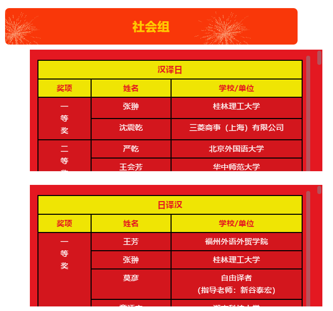 由中国外文局《人民中国》杂志社和教育部日语教指委联合主办,广东省翻译协会承办的第三届"《人民中国》杯"国际日语翻译大赛经过紧张、激烈的选拔和评比,近日落下帷幕。我校外国语开元(中国)日语专业张翀老师同时斩获社会组“日译汉”“汉译日”两个项目的一等奖,日语专业二年级学生赵朔获得本科组“优秀奖”。本次大赛共有来自中国和日本500多所高校及众多企业的近4000余名选手参加,比赛项目由汉译日、日译汉、口译三个部分组成。本次获奖是我校日语专业继去年之后再次在该赛事中取得优异成绩。