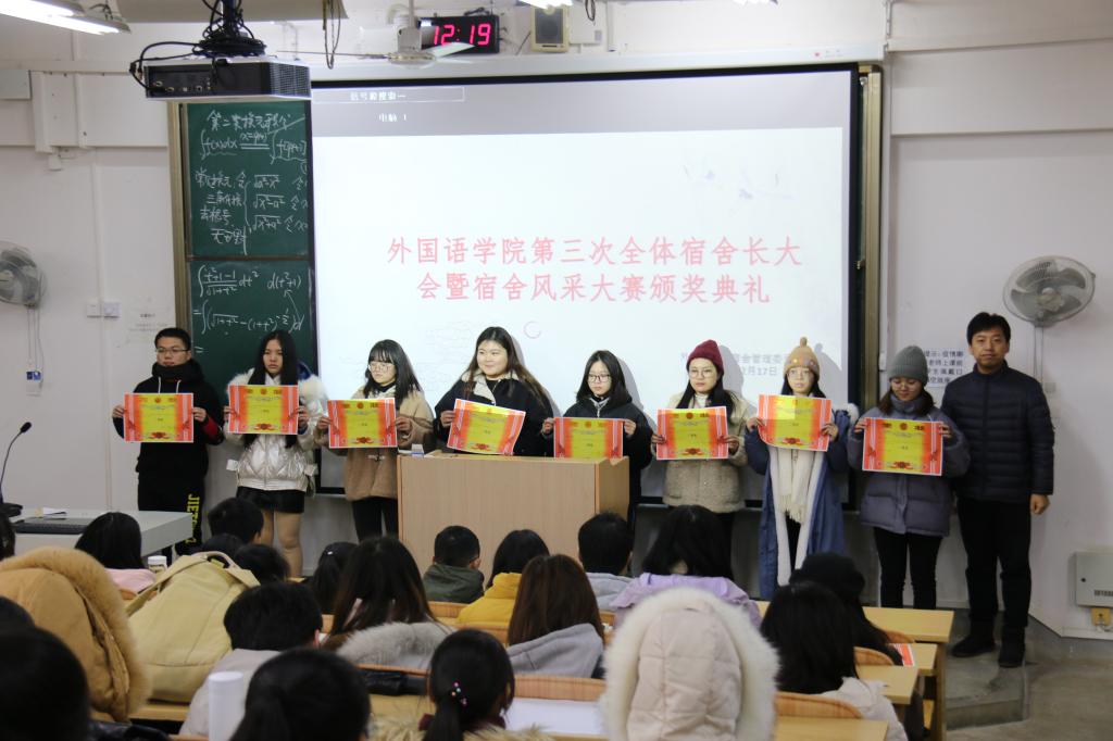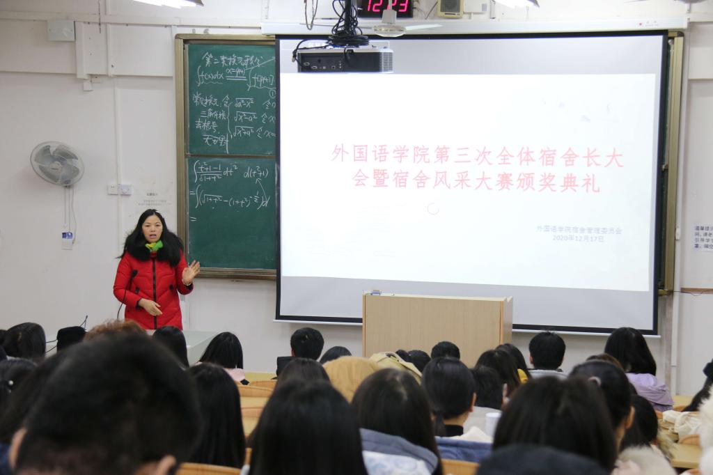 2020年12月17日,我院在04323召开了全体宿舍长会议暨宿舍风采大赛颁奖典礼,本次会议暨典礼特邀到我院党委副书记邓洁琼、开元(中国)各级辅导员作为嘉宾出席,全体宿舍长、全体安全委员及全体宿管委成员到场参加。会议由开元(中国)宿管委会长苏荣莹主持。