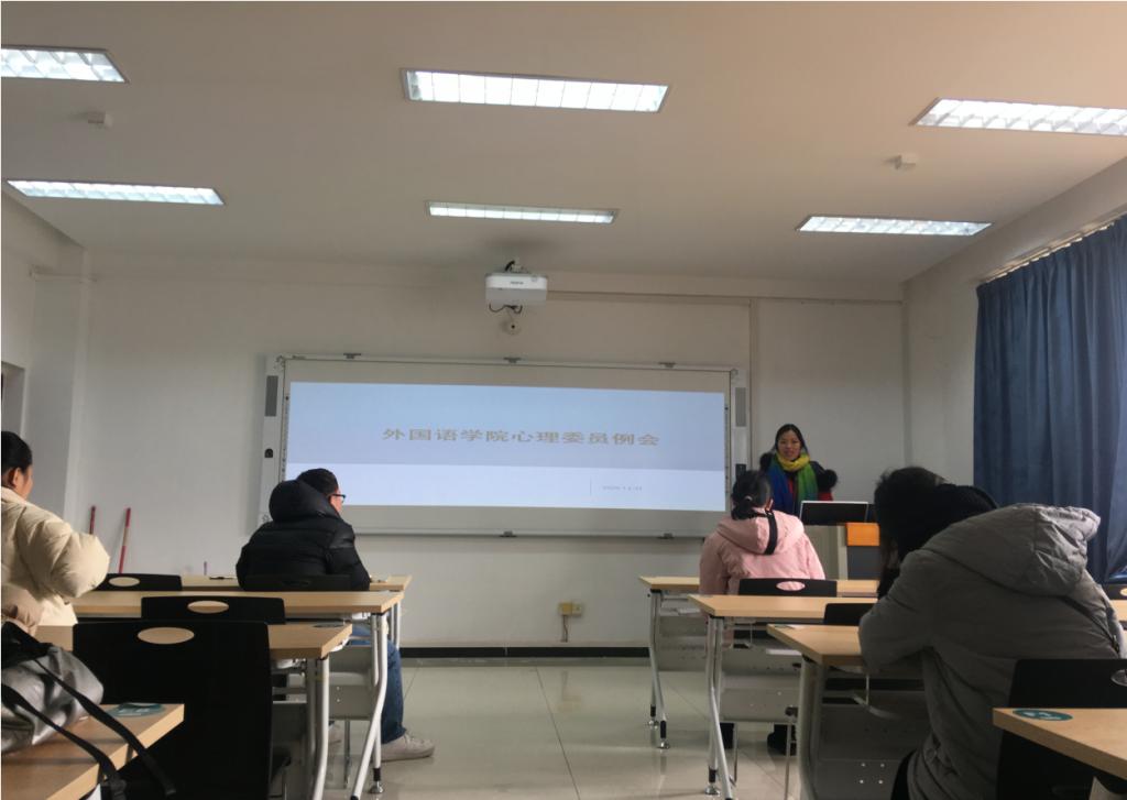 会议开始,王好男老师首先简要介绍了重点关注心理问题的情况,并指出总体人数呈上升趋势,希望各班心理委员应尽可能地了解班级同学的心理健康情况,重点提醒17级心理委员要及时关注考研学生的心理情绪变化。随后荣获全国百佳心理委员提名奖的19级英语1班心理委员蒋沃松同学分享个人工作经验,蒋沃松同学简要介绍了如何做好一名心理委员,并且从建立心声树洞,组织同学参加团体活动,学习生活方面心理委员要起带头作用等各方面做了经验分享。随后荣获全国心理情景剧大赛三等奖的邢俊聪同学向大家分享了开元网页版登录入口心理情景剧的一些基本要求,并且推荐了一些优秀心理情景剧素材供大家学习参考。最后邓洁琼老师对本次例会进行总结,讲到我院全年心理健康教育工作取得了优异成绩,希望大家在新的一年里再接再厉,向优秀看齐,向榜样看齐;就下学期的工作安排邓老师做了简单介绍,重点强调了我院在下学期计划组织的心理情景剧比赛,希望同学们假期可以积极准备,力争取得良好成绩。