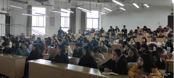 首先,李林军老师对我院上学年学生公寓管理取得第一名的优异成绩提出表扬,激励全体宿舍长再接再厉,再创佳绩。其次,邓洁琼老师对此成绩予以肯定,但同时也指出宿舍仍存在着用电安全隐患及晚归等问题,邓老师提醒同学们要做好宿舍内相关安全工作。接着,邓老师表示本学期的卫生检查工作有所调整,提醒同学们注重检查要点,在季节流感高发期注意通风,做好个人卫生工作。另外,邓老师希望同学们能构建良好的宿舍关系,和谐相处。最后,姚倩老师对接管本学期的宿舍卫生工作发表了讲话。相信在姚倩老师的带领下,我院在宿舍管理方面定会再创佳绩,更创辉煌。