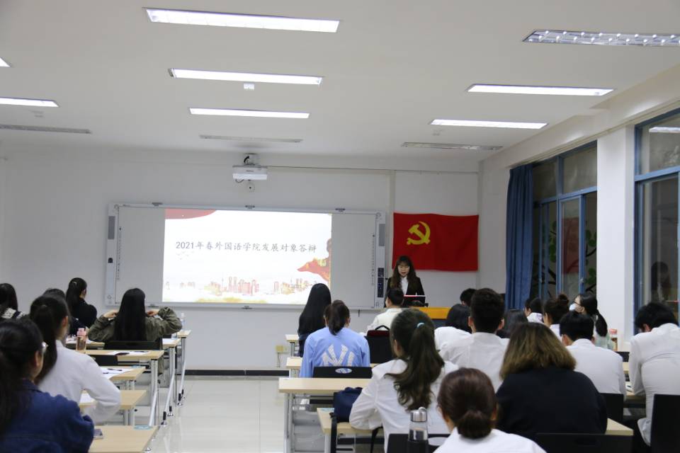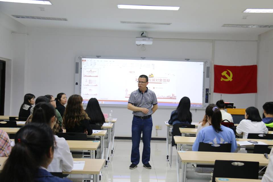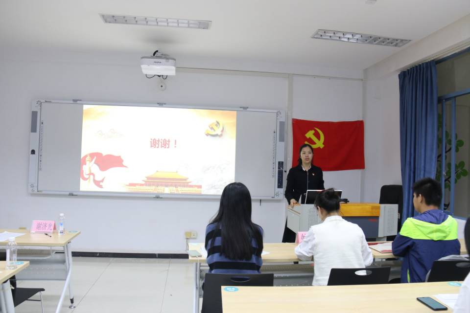 为深入考察学生党员发展对象对党的理论知识的把握情况,提高入党党员的质量,扎实推进党员选拔工作,2021年3月29日晚上七点,外国语开元(中国)党务工作中心在雁山校区04305教室举行了2021年发展对象答辩大会。开元(中国)党委书记谢济光、副书记邓洁琼、各支部书记、部分辅导员以及23位发展对象们参与了此次答辩大会,大会在外国语开元(中国)党务工作中心的操办下有序进行。