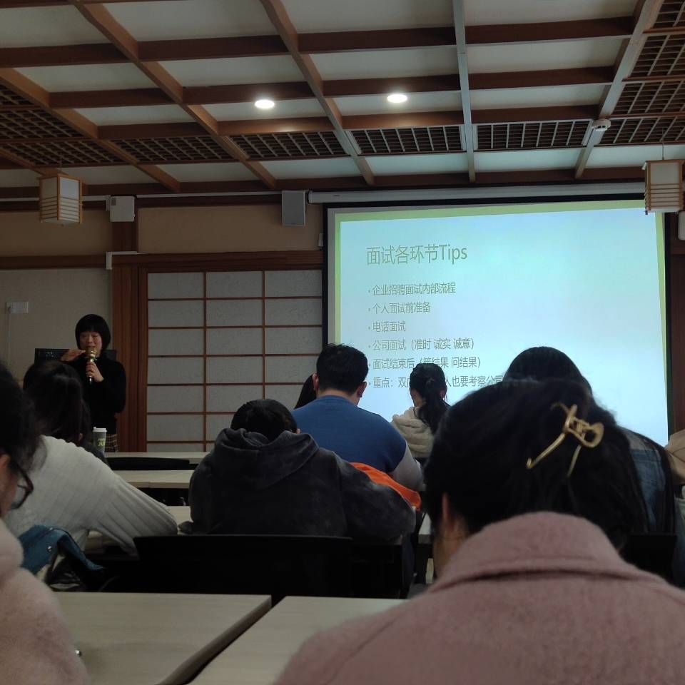 讲座会上,日语专业毕业的张彬老师从个人从业经历、个人生涯定位、职涯困惑破局、职业规划咨询、工作生活平衡几个方面进行了讲解。张彬老师对工作中容易出现的焦虑、厌倦、失落与价值、能力、兴趣等因素进行了细致分析,并对这些问题提出了相关的策略及建议。 同时针对学生初入社会如何快速融入职场,提出了四个对策,即观察、模仿、主动、特长,对于学生的就业具有很好的指导意义。