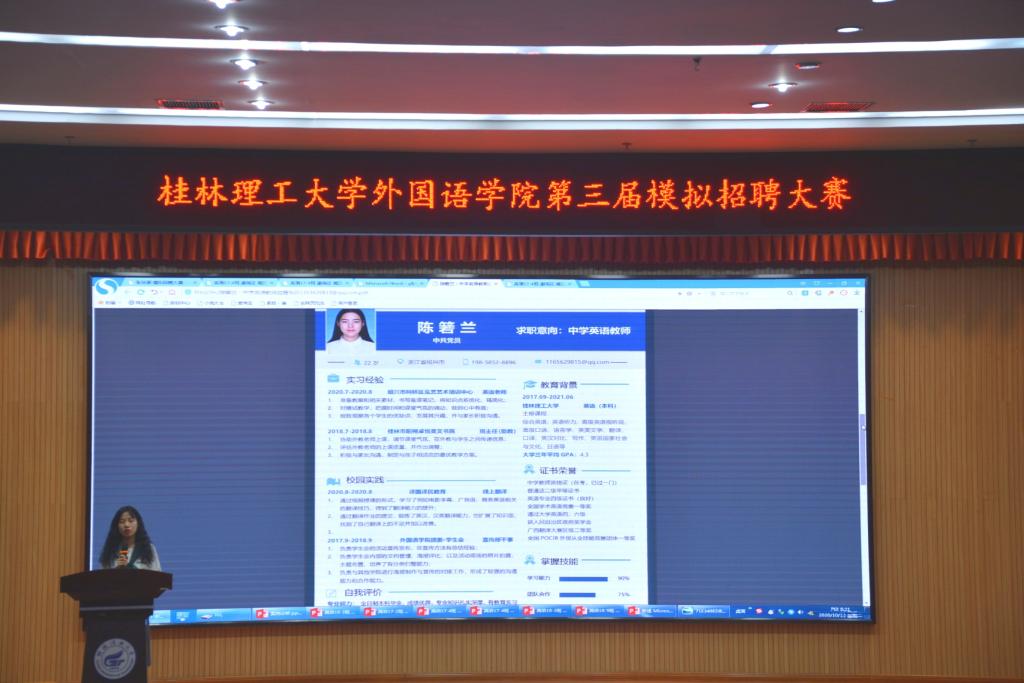 此次模拟招聘大赛的顺利举办,不仅对在校大学生的应聘理论知识有了一个初步的普及,而且为他们提供了一个锻炼自己的平台。同时也使同学们通过评委睿智的点评认识到了自己的不足,明确了接下来在真正招聘会上的奋斗方向,在锻炼语言表达、临场应变等方面能力的同时也为其日后的工作应聘打下了坚实的基础。