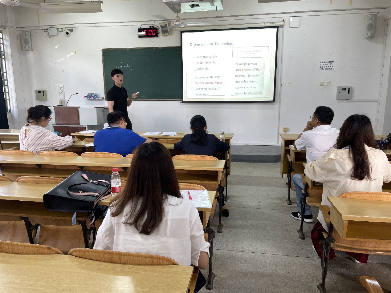 新进教师房心悦、王枫博老师精心准备了教学设计和多媒体课件,在试讲过程中,使用中英双语教学,上课思路清晰,重点明确,教学准备充分,PPT设计精美。教学氛围生动有趣,并设置了不同的教学环节,包括小组练习,学生回答问题,教师点评等。