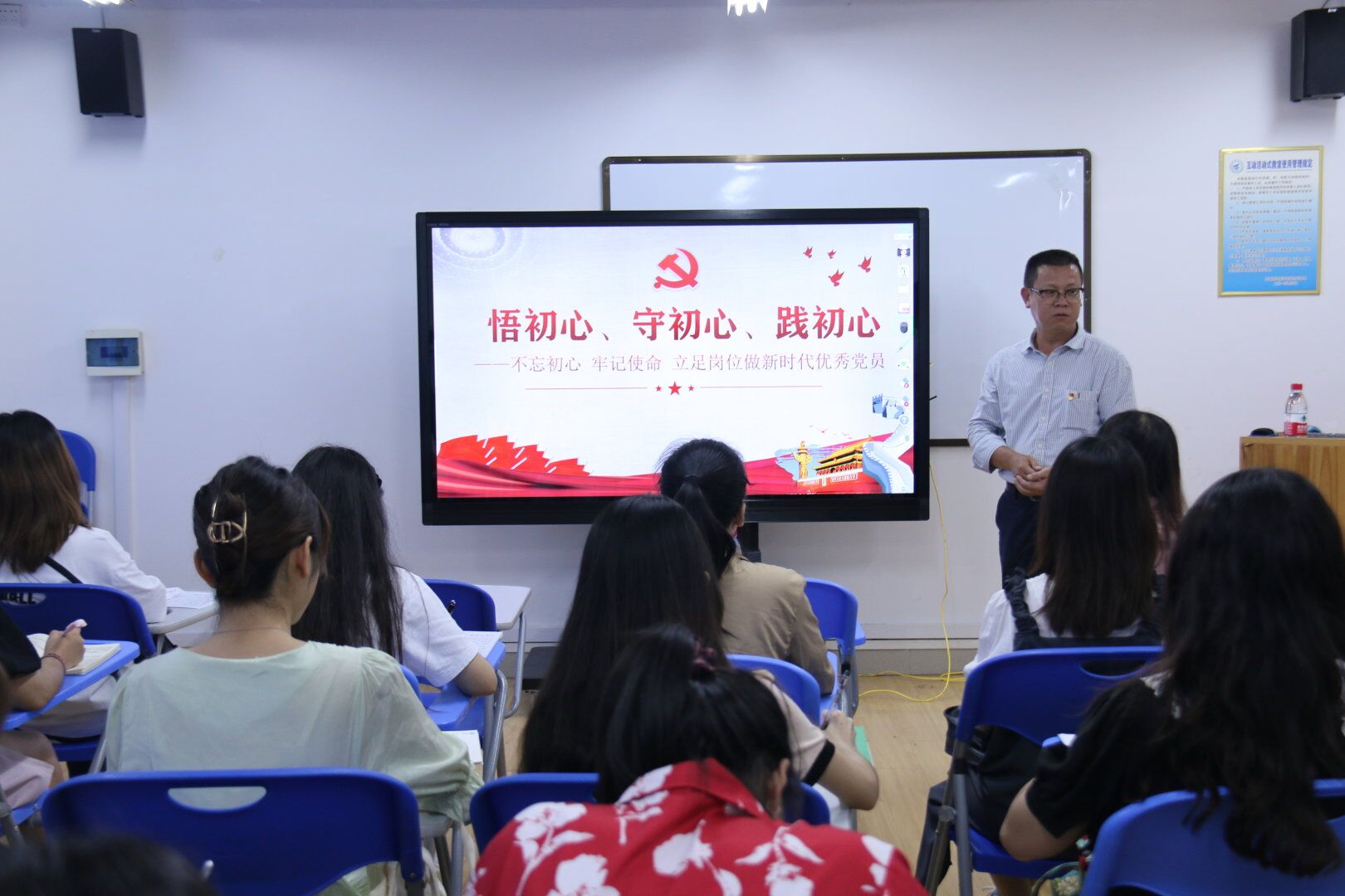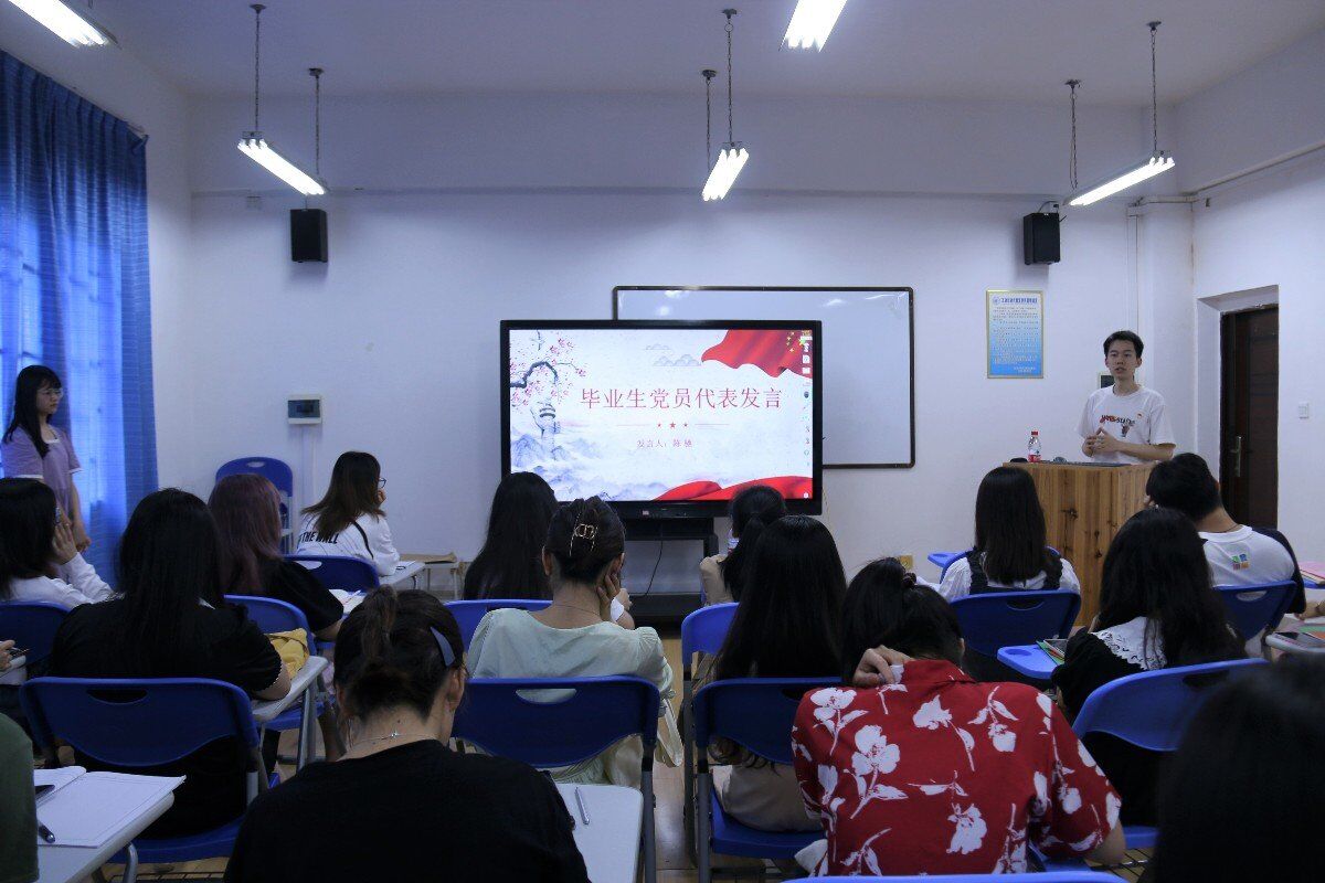 2021年6月4日下午,外国语开元(中国)党委在雁山校区04206活动教室召开毕业生党员教育会,学习以“悟初心、守初心、践初心”为主题的专题党课。此次党课活动共分五个流程:一、全体与会人员起立奏唱国歌;二、谢济光书记讲述以“悟初心、守初心、践初心”为主题的专题党课;三、邓洁琼副书记讲述以“感恩与诚信”为主题的专题党课;四、毕业生党员代表发表讲话;五、全体成员宣誓。此次会议由外国语开元(中国)专职组织员、纪委委员陈欣主持,开元(中国)党委书记谢济光、党委副书记邓洁琼出席会议,全体毕业生党员参加学习。