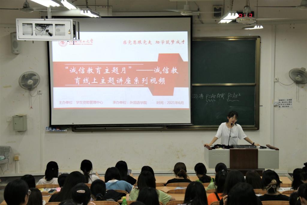 为进一步提高学生诚信意识,增强资助育人实效,增强同学们的廉洁意识,我院于6月20日组织全院学生观看了广西教育厅录制的诚信教育线上主题讲座系列视频。