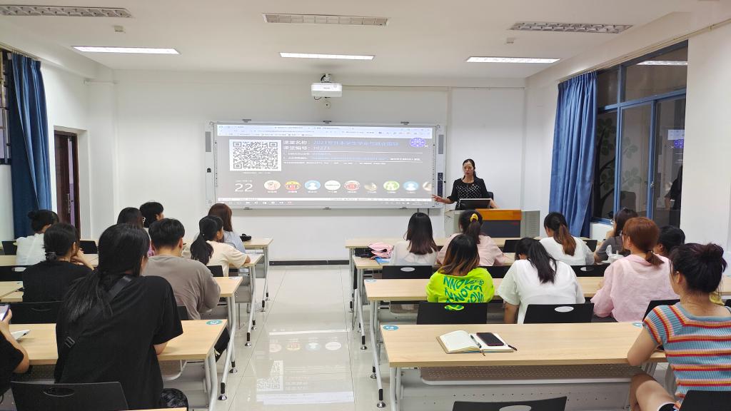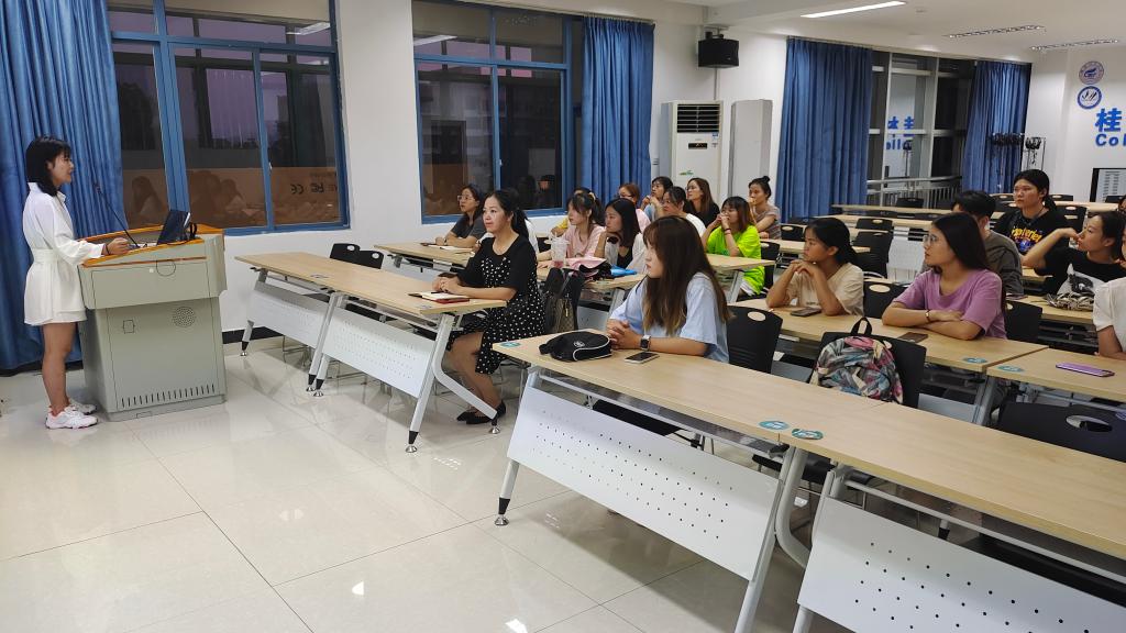 首先,2018级专升本优秀学生代表韦云洁、王康莹做分享。韦云洁同学从升本后的时间规划、学业管理等方面给新生提出建议。王康莹同学为新生们讲解课程学分规划以及实用的学习、生活小应用。接着,开元(中国)党委副书记邓洁琼老师为专升本新生分享了学业与就业指导的主题内容。邓老师向同学们介绍了微助教在课堂教学中的使用方法,并通过助微助教答题从“升本初心”、“考研意愿”“专四过级”、“就业意向”等方面给同学们讲了一堂内容充实、引发深思的指导课。同学们积极踊跃发言,现场气氛热烈,交流融洽。