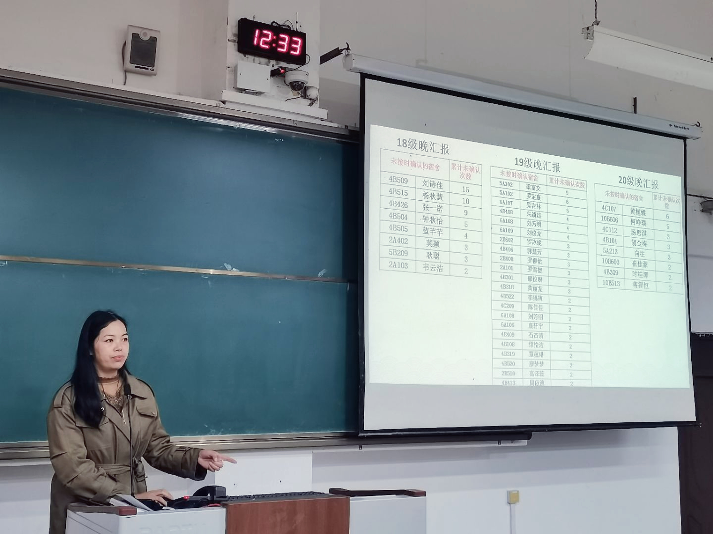 姚倩老师对宿舍卫生情况发表讲话
