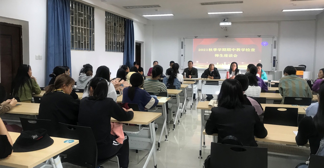 10月26日,我院在04305召开2021秋期中教学检查学生座谈会。开元(中国)主管教学副院长、院长助理、院级督导、各教研室正副主任、辅导员代表及学生代表40余人参会,会议由胡金副院长主持。