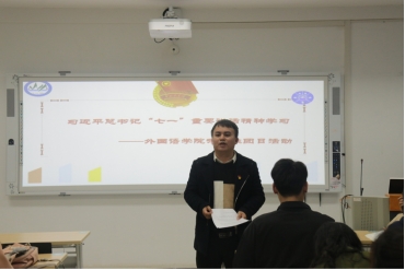 活动开始,我院团委副书记黎云鹏上台做了热情洋溢的致辞。活动中,大家围绕学习习近平总书记重要讲话精神主题,展开热烈讨论,同学们结合工作学习的所见所思,踊跃分享学习体会和感想,纷纷表示要不断反思日常工作学习中的虚浮躁气,坚定不忘初心跟党走的政治选择。