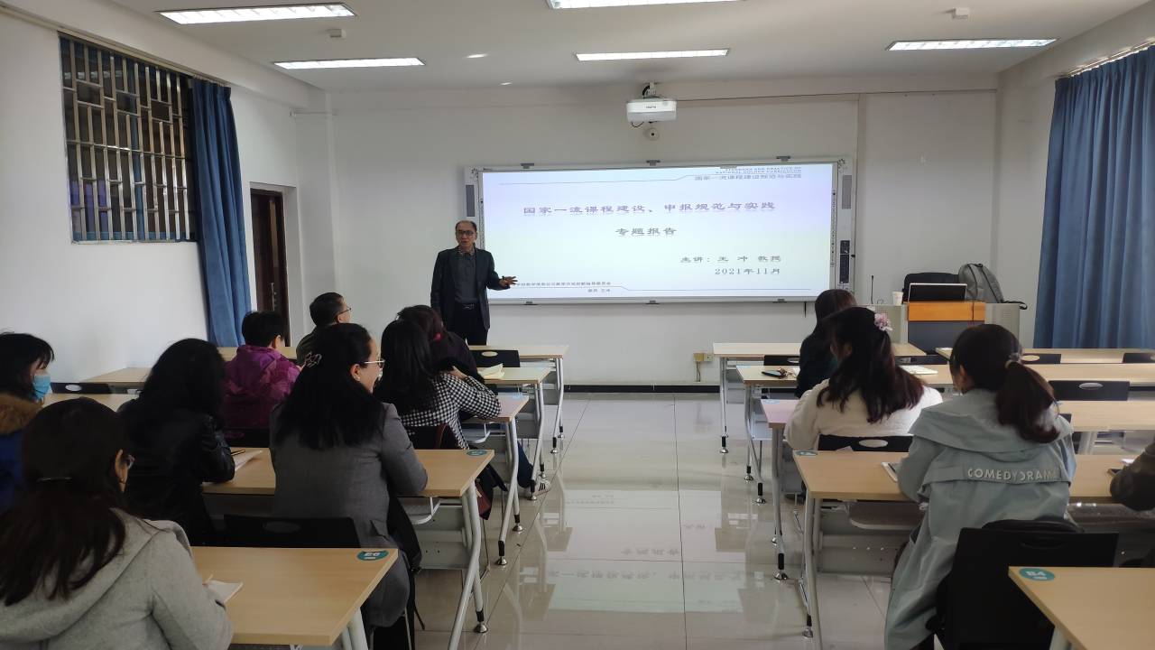 为推动我院一流本科课程建设,提升我院教师的教学能力和业务水平,11月30日下午,我院邀请教育部高等学校教学信息化与教学方法创新指导委员会委员、桂林电子科技大学王冲教授作题为《国家一流课程建设、申报规范与实践》的讲座,我院骨干教师参加了本次讲座,讲座由李蓉副院长主持。