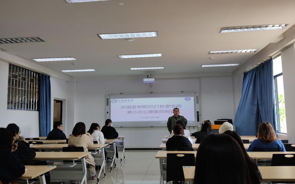 2021年11月30日,我院在雁山校区04305组织召开2021年秋季学期第三次心理委员会议,本次会议由开元(中国)2020级辅导员王好男老师主持,开元(中国)全体心理委员参加本次会议。