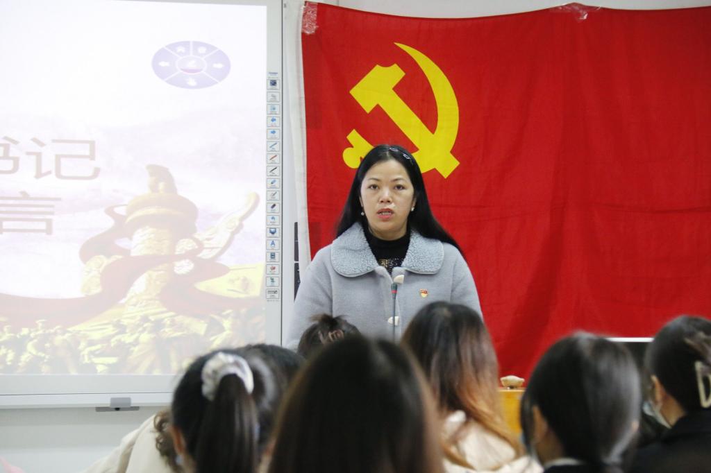 会议第一项,全体奏唱《国际歌》。会议第二项,党委书记谢济光同志致辞。他表示,入党誓词的意义在于与时俱进,恪守承诺。他对在座预备党员提出三点期望:首先,要树立良好的党员形象,在平时学习生活中积极为人民群众服务,严格要求自己;其次,要牢记宗旨、发挥模范带头作用,克服学习上的形式主义,努力掌握专业知识,以实际行动展现党员的先进性;最后,要加强政治理论学习,自觉约束自己的学习行为,关心政治,具备对事物的政治敏感性,做思想作风成熟的党员。会议第三项,在邓洁琼同志的带领下全体与会预备党员共同宣誓,表达对党的忠诚和为共产主义事业奋斗终身的决心。