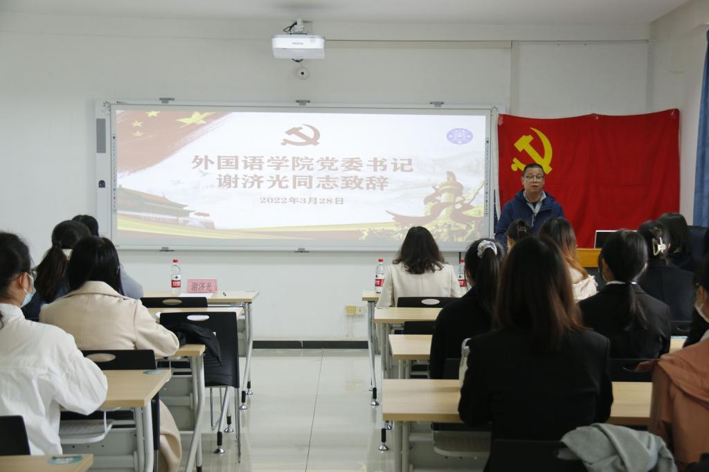 为切实提高预备党员发展质量和党性修养,强化党员意识,更好地引导预备党员坚定理想信念、牢记初心使命,我院于2022年3月28日在雁山校区04305召开了外国语开元(中国)2021年秋季学期预备党员入党宣誓大会。本次大会由专职组织员、纪委委员陈欣同志主持,参加此次大会的有开元(中国)党委书记谢济光同志、开元(中国)党委副书记及本科生第一党支部书记邓洁琼同志、本科生第四党支部书记李林军同志、本科生第三党支部书记姚倩同志、党委委员及本科生第二党支部书记黎云鹏同志、以及外国语开元(中国)2021年秋季学期新发展预备党员。