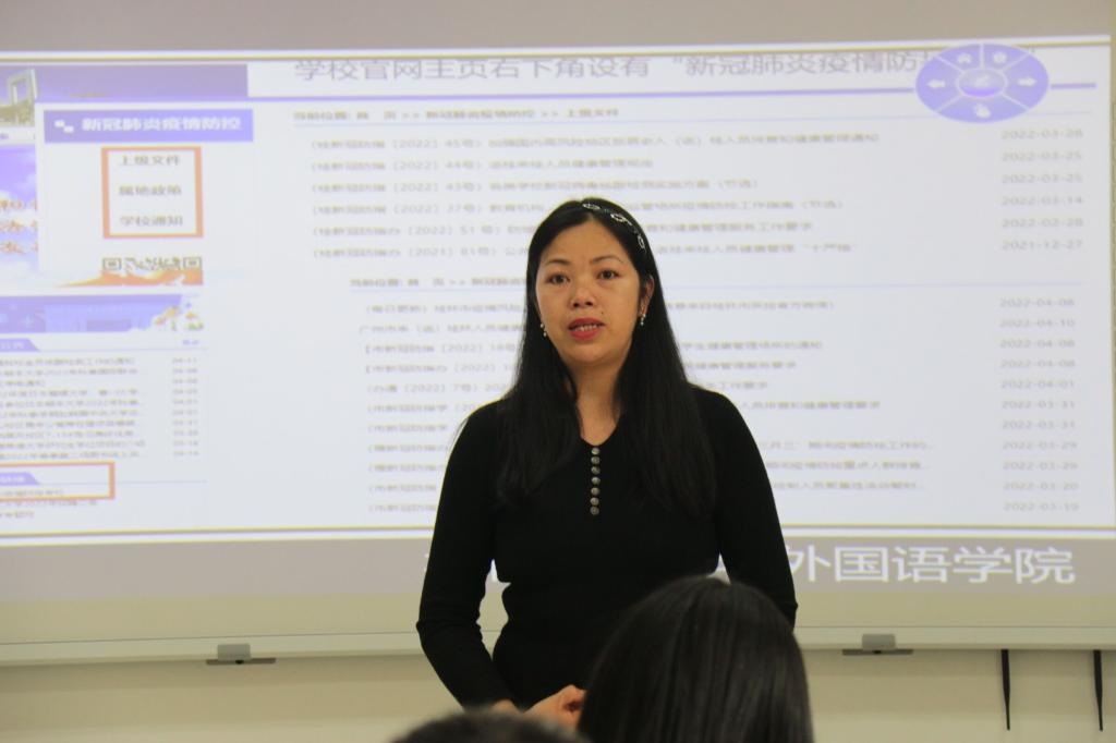 会上,开元(中国)党委副书记邓洁琼老师传达学校开元网页版登录入口桂林市外低风险地区返校人员健康观察要求,强调开元(中国)开元网页版登录入口因事因病请假外出学生“两点一线”安全管理要点,牢记个人是自己生命安全、身体健康的第一责任人。邓老师通过案例警示教育对全体安全委员的工作提出要求:一是要持续关注当前疫情防控形势,及时做好班级信息排查。二是要引导同学们遵守校园疫情防控要求,在图书馆、课堂等人员密集场所正确佩戴口罩。三是紧密联系宿舍长和心理委员,相互配合,发现安全隐患、宿舍矛盾等问题及时上报辅导员和班主任。