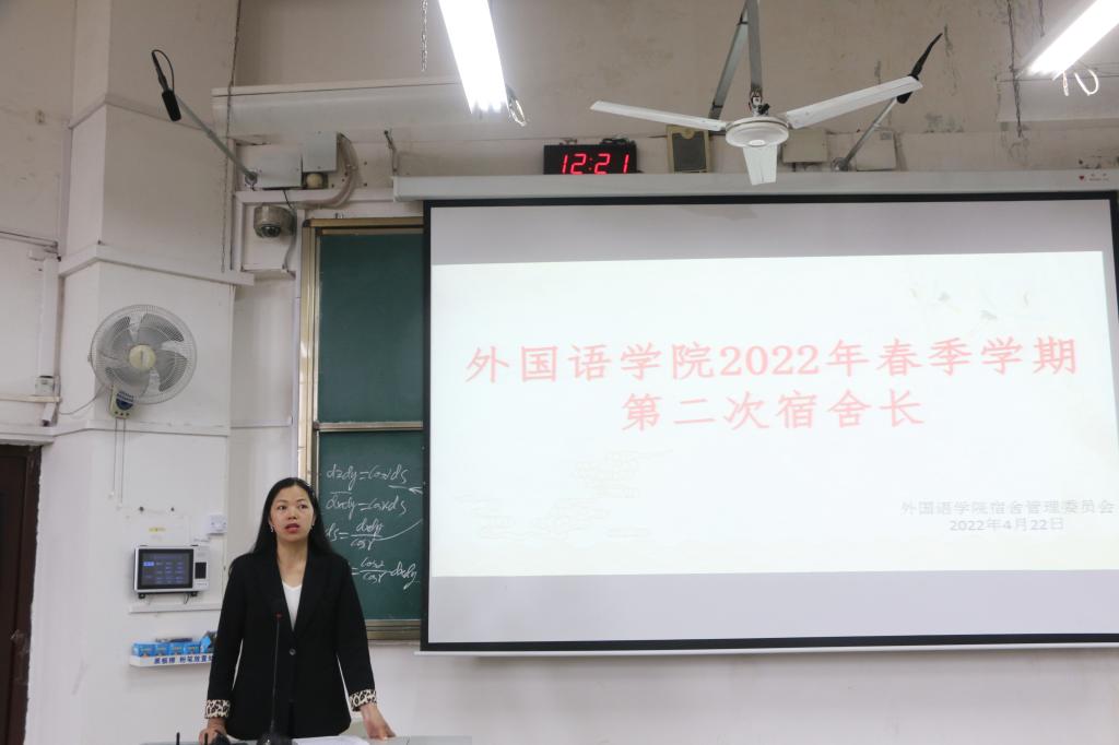 为了更好地开展开元(中国)宿舍管理工作,加强落实疫情防控要求以及宿舍管理,开元(中国)于2022年4月22日中午在04324召开2022年春季学期第二次全体宿舍长大会。开元(中国)党委副书记邓洁琼老师及年级辅导员出席会议,全体宿舍长到场参加。会议由姚倩老师主持。