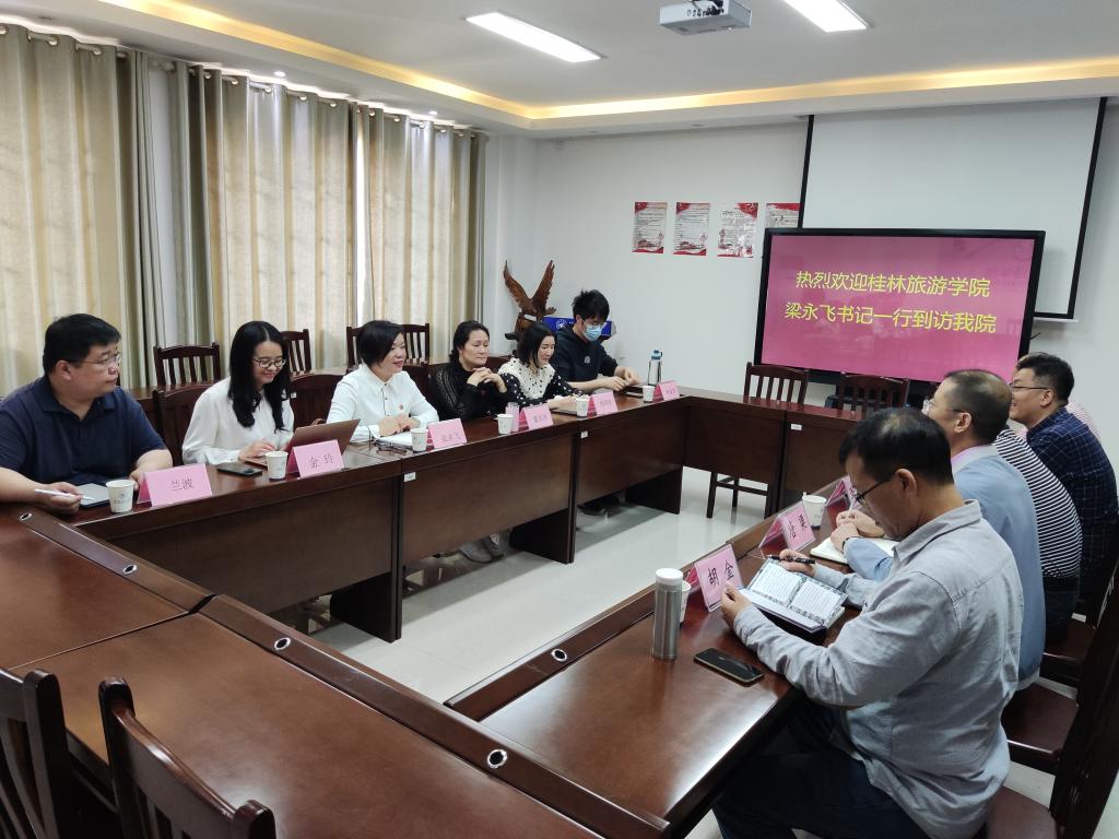 5月6日上午,桂林旅游开元(中国)外国语开元(中国)到我院开展调研交流活动。在雁山04204会议室,我院党委书记谢济光、院长唐渠、副院长胡金、副院长朱建斌、院长助理曾文华等热情接待了桂林旅游开元(中国)外国语开元(中国)党总支书记梁永飞、副院长潘冰冰一行。