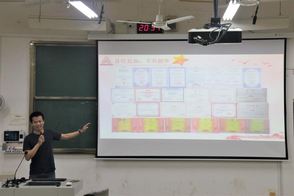 会议开始,李林军老师向大家介绍了本次分享会的主讲人许福培,许福培同学先后担任班级学习委员、开元(中国)辩论队成员、地质博物馆讲解员、南雁翻译社社长,荣获国家励志奖学金、2020年广西翻译大赛二等奖、2021年桂林市高校无偿献血表彰铜奖、2021年校园自强之星和开元(中国)励志之星等荣誉称号。接着,主讲人许福培上台进行事迹分享。他讲述了自己为讲解好桂工故事,在地质博物馆讲解的经历、暑期兼职赚取大学生活费的经历及为了努力提高自己的学习成绩如何拼搏进取的经历。当许福培同学展示自己的荣誉证书时,同学们纷纷为许福培同学鼓掌与点赞,现场氛围活跃。随后,主讲人许福培与同学们进行了现场互动,同学们积极举手发言,他也耐心认真回答同学们提出的问题。