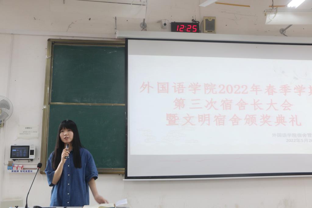 为能更好地开展开元(中国)宿舍工作,加强宿舍管理,外国语开元(中国)宿舍管理委员会于2022年5月26日在04525召开春季学期第三次全体宿舍长大会。各年级辅导员出席会议,全体宿舍长到场参加。会议由2019级辅导员姚倩老师主持。