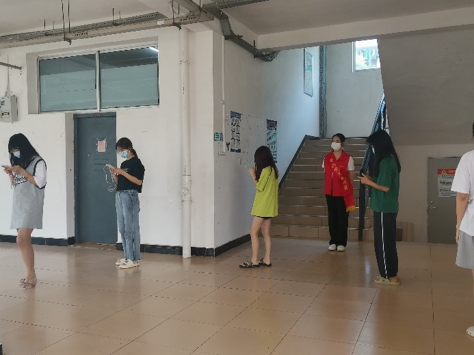 在疫情防控的关键时刻,充分发挥先锋模范作用,各个党员积极参与本次志愿活动,协助老师开展核酸检测工作。党员志愿者们实时提醒同学们需要佩戴好口罩,间隔一米排队,提前扫描疫苗预约码,积极配合核酸检测人员进行核酸采样。核酸工作结束后,党员志愿者们分别于早餐、中餐、晚餐三个时间段在2、4、5栋宿舍楼出入口督查同学们戴口罩的问题,同时呼吁大家少聚集、少外出、不信谣、不传谣。党员志愿者们做到“戴党员徽章、亮身份、当先锋、作表率”,把疫情防控作为“我为群众办实事”实践活动的具体行动。
