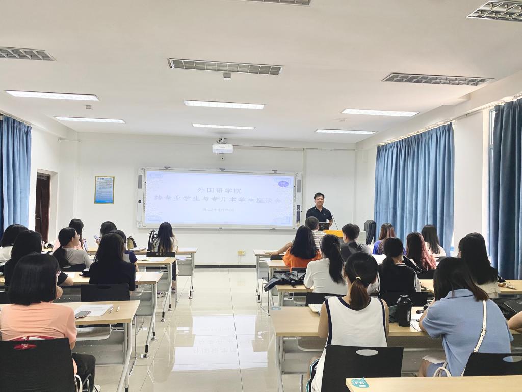 首先,2019级专升本优秀学生代表杨赞做分享。杨赞同学从升本后的时间规划、学业管理等方面给新生提出建议,为新生们讲解课程学分规划以及实用的学习、生活小应用。接着,2020级转专业优秀学生代表陈小云做分享。陈小云同学就如何适应转专业后的环境、确立新人生目标等问题进行阐述,面对大二繁重的学习任务,建议新生要始终保持态度端正,目标清晰,规划合理,将一切计划都落实到行动上。接着,学工组副组长于文霖老师作总结发言。于老师强调,同学们要权衡学习与学生工作,积极参加学生活动,不断提高自己的综合能力,也祝愿转专业与专升本的同学在外院能够通过自己的努力,遇见更加优秀的自己。最后,2020级辅导员李林军老师补充发言。李老师提醒同学们要不忘“升本初心”“转专业初心”,努力学习,全面提升自己,同时向同学们讲解了宿舍卫生安全注意事项。