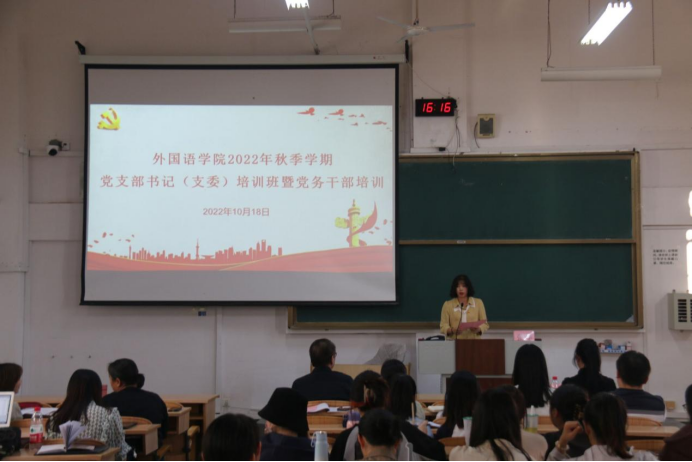 10月18日外国语开元(中国)党委在雁山校区04323举行培训班开班典礼,培训班全体成员参与,开班典礼由外国语开元(中国)专职组织员、纪委委员陈欣同志主持。