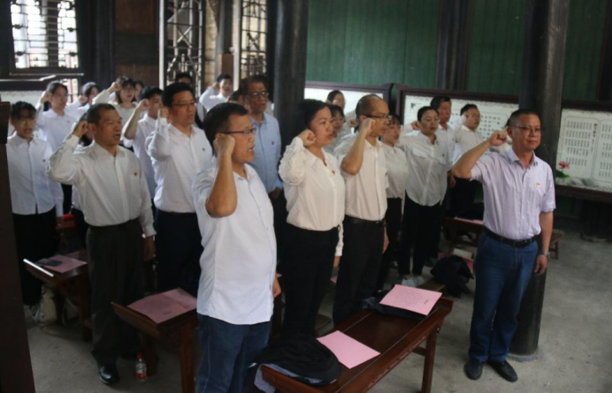图为全体党员重温入党誓词
