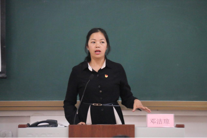 图为邓洁琼同志为党员同志们讲授微党课