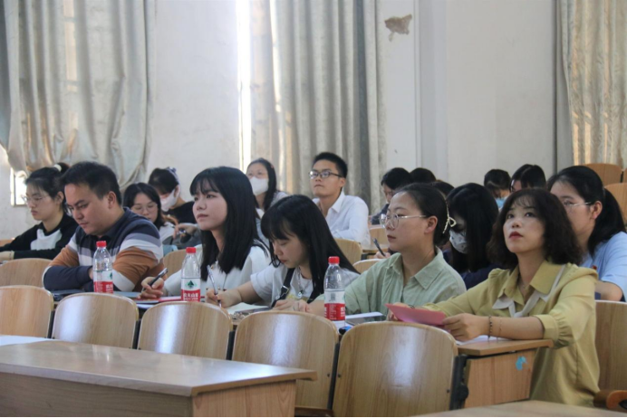 图为邓洁琼同志介绍培训班组织方式、内容和日程安排