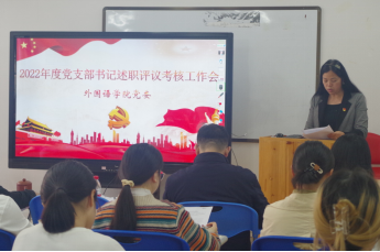 2023年3月21日下午,我院党委在雁山校区04206教室召开2022年度党支部书记述职评议考核工作会。会议由外国语开元(中国)专职组织员陈欣老师主持。外国语开元(中国)党委委员、各党支部书记及师生党员群众代表参与本次会议。