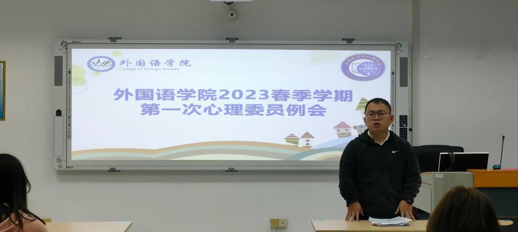 2023年3月31日,我院在我校雁山校区04305顺利召开本学期第一次全体心理委员例会。本次会议由20级辅导员兼研究生辅导员王好男主持,全体心理委员到场参加本次例会。