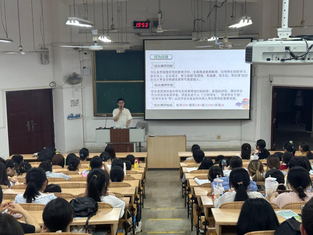 会议开始,梁璇老师向大家介绍了本次分享会的主讲人,两位同学都是学习成绩十分优秀,在20级综测成绩名列前茅的优秀学长学姐。随后,彭劲超同学上台进行分享。他围绕着大学生综合测评主题向同学们进行了讲解,介绍了综合测评的目的、作用和组成,让同学们对综测有了初步了解。他从智育、德育、能力、体育四个方面详细说明了他的学习方法,同学们受益匪浅。接着,邓钦梅同学上台进行分享。她展示了自己丰富的任职履历与平时学习日语专业课的方法,并重点提出应该注重第二外语学习,提倡同学们积极参与比赛,以赛促学。邓钦梅同学鼓励同学们不管结果如何,应该勇敢迈开第一步,然后去享受过程。最后,现场进行了互动环节,同学们积极发言,主讲人耐心解答了同学们的疑问。
