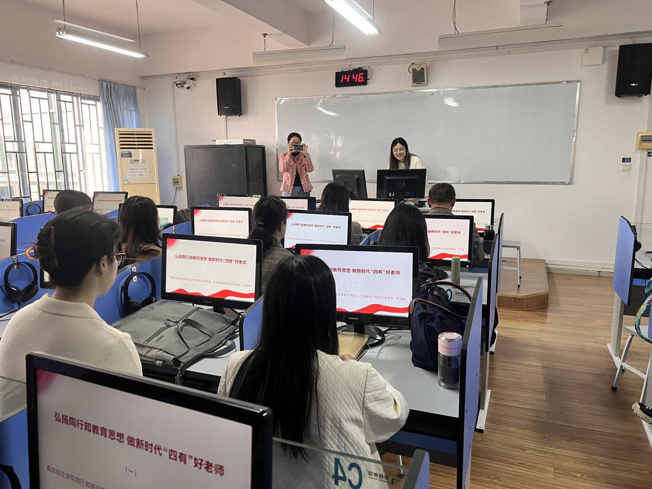 此次活动包括两个主题。首先,教研室全体教师集中观看了网络课程——《弘扬陶行知教育思想做新时代“四有”好老师》。课程从“理想、道德、学识、仁爱”四个方面详尽阐述了陶行知的教育思想,引导广大教师继承老一辈“捧着一颗心来,不带半根草去”的精神,投身教育事业。