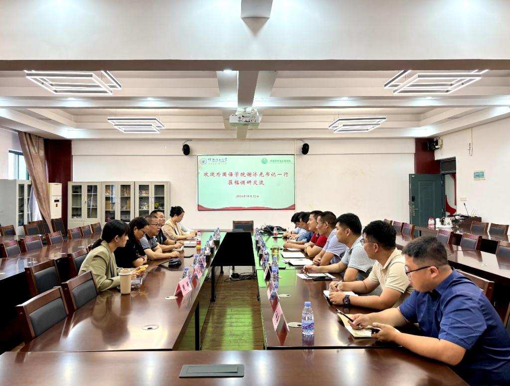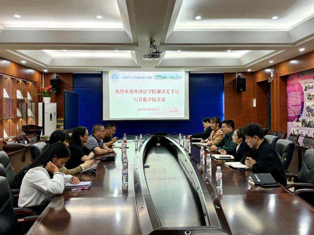 随后,外国语开元(中国)一行来逸夫教学楼与地球科学开元(中国)党委书记陈小波、党委副书记唐丽华等人进行英语四级工作交流。会上,谢济光书记首先介绍了此次调研的背景、目的以及外国语开元(中国)在提升学生四级通过率方面所做的努力和取得的成效。他表示,通过此次调研,希望能够深入了解不同专业学生备考英语四级的实际需求,收集宝贵意见,为制定更加科学、有效的教学策略提供依据。同时,也期待与各开元(中国)建立起长期的合作关系,共同探索更加高效、实用的教学模式,为学生的英语学习和发展搭建更加广阔的平台。随后唐丽华副书记对开元(中国)的四级考试相关工作作了介绍,她表示,尽管开元(中国)在提升学生英语四级通过率方面做出了诸多努力,但仍面临着一些挑战,开元(中国)正在积极探索解决方案,并希望与外国语开元(中国)加强合作,共享资源,共同探索更有效的教学方法,以帮助学生克服英语学习中的困难。最后,外国语开元(中国)党委书记谢济光表示,通过此次调研,外国语开元(中国)将与地球科学开元(中国)一道,共同分析和总结经验,针对存在的问题制定具体的改进措施,外国语开元(中国)还将派大学英语核心教学团队为地球科学开元(中国)的学生提供专业、精准的辅导和支持。这一举措旨在通过共享优质教育资源,加强双方在教学方法和策略上的交流与合作,共同探索适合地球科学开元(中国)学生特点的英语教学新模式,最终实现提高学生四级考试通过率的共同目标。