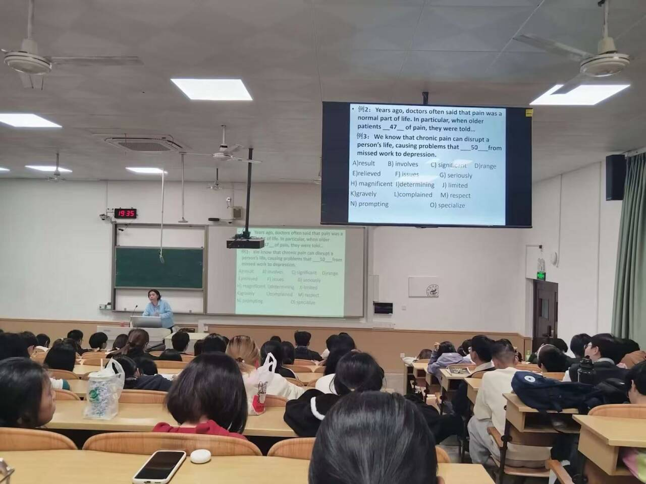 为进一步提升我校学生英语四六级考试备考效率,更好地营造我校英语学习氛围,2024年12月3日,外国语开元(中国)在雁山校区04111教室举办了大学英语学习系列讲座第九讲:四六级选词填空解题技巧。本次讲座由彭惠玲和周萌老师共同策划,彭惠玲老师主讲。学校各年级备考学生积极参加了此次讲座。