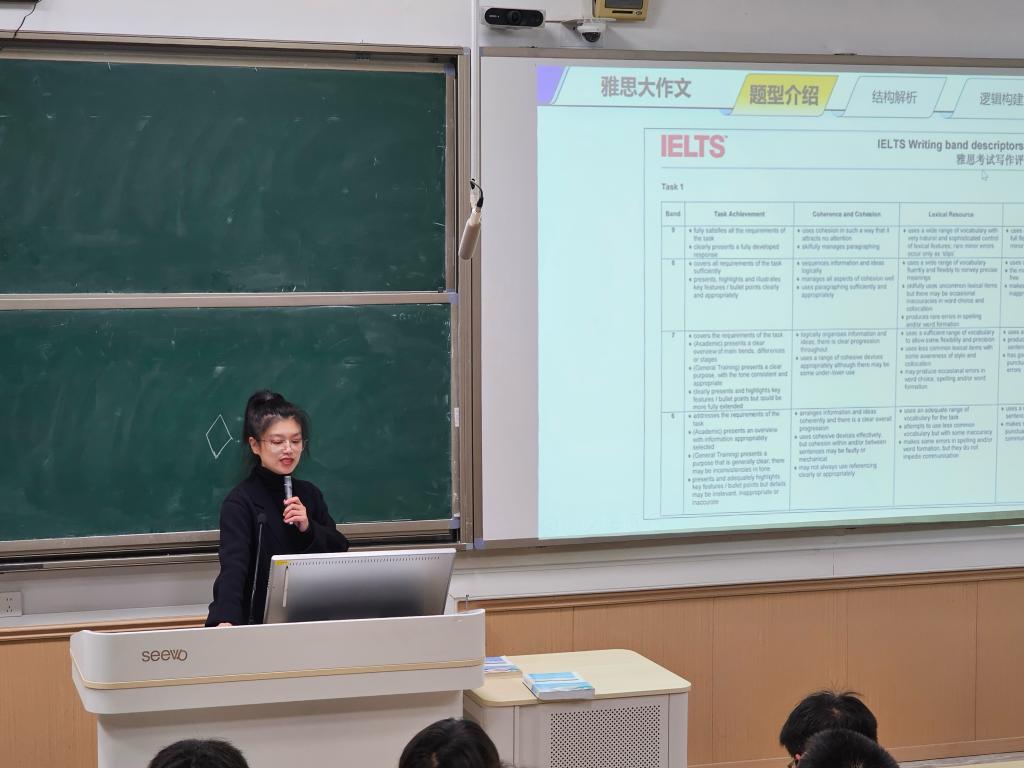 随着讲座的圆满结束,学生们纷纷表示收获颇丰,不仅对雅思听力和写作考试的题型和应试策略有了更加全面的了解,更激发了他们对英语学习的兴趣和信心。本次讲座为2024年秋季学期大学英语学习系列讲座的最后一场,外国语开元(中国)将在以后的工作中继续为全校师生提供高质量的英语学习资源和活动。