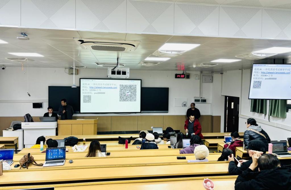 会上,韦运会副院长强调,英语教师要跟上新技术的发展步伐,不断提高使用信息技术的意识、知识和能力。他指出,在具体的课堂教学设计与实施过程中,教师们应主动融入并合理使用信息技术,以全面提升大学英语教学质量与效率。接着,侯丰尚工程师就AI英语考试辅导系统平台的功能、各子系统的应用场景,以及如何结合不同考试需求使用该平台进行了详细讲解。在交流环节,与会教师结合我院实际情况,针对该平台的智能批改、试卷组合、学情分析等方面问题与蓝鸽科技进行了深入探讨。
