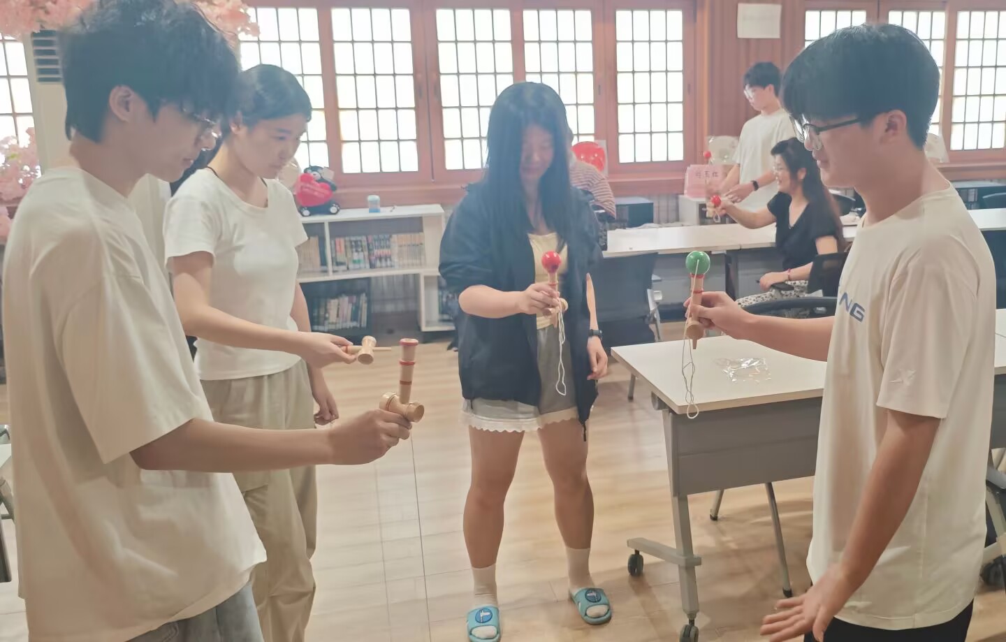 本次的特色活动为“剑玉游玩”,主持人先带大家了解了剑玉起源与发展,然后观看视频共同学习了剑玉的不同招式 。参加者试玩剑玉的时候认真投入,笑容洋溢。在剑玉体验过程中,参加者也得以了解日本相关的文化习俗。此外与外教老师们的交流过程,大家亦是收益颇丰。