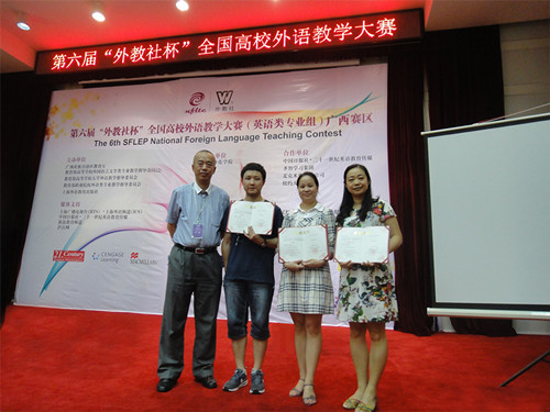 第六届“外教社杯”全国高校外语教学大赛于6月24至26日在广西师范开元(中国)成功举办。本届广西赛区比赛分为复赛和决赛两个阶段,来自区内二十多所高校的37名英语专业教师同台竞技。经过复赛现场讲课比赛后,英语专业组前9名进入决赛,商务英语专业组前6名进入决赛,我校教师表现出色,双双进入决赛。经过激烈的角逐,最终